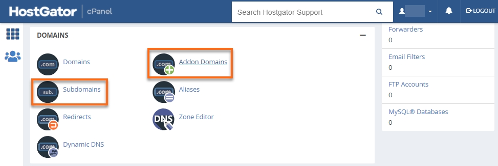 1. Login to Cpanel. 2. In the Domains section, click the Addon Domains or Subdomains icon, depending on which you'd like to modify.